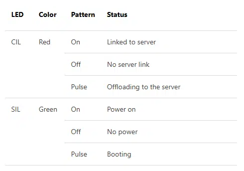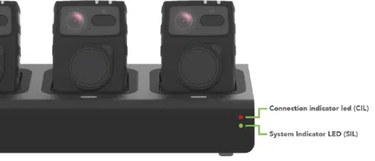 Het T2 Series Docking Station heeft aan de voorzijde twee indicator LED’s. De Connection Indicator LED (CIL) geeft de status van de serververbinding weer en de System Indication LED (SIL) toont de status van het docking station.